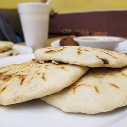 These in my opinion are the best popusas in town. The flavor is very good. And the thing that I love most is that they are not greasy. The texture is perfect! Soft and fluffy! My favorite ones are queso and chicharron. Of course, I think they are all delicious, they have many others to choose from. I also tried their Salvadoran horchata, and I personally was not a fan. It has a strong sesame aftertaste. Guess I'll go with my usual coke next time. Service has always been great! These popusas are made to order and good things take time. So just be patient. The place isn't fancy, it used to have some color. I don't what happened but the popusas have not lost its good taste and quality, guess that all that matters!